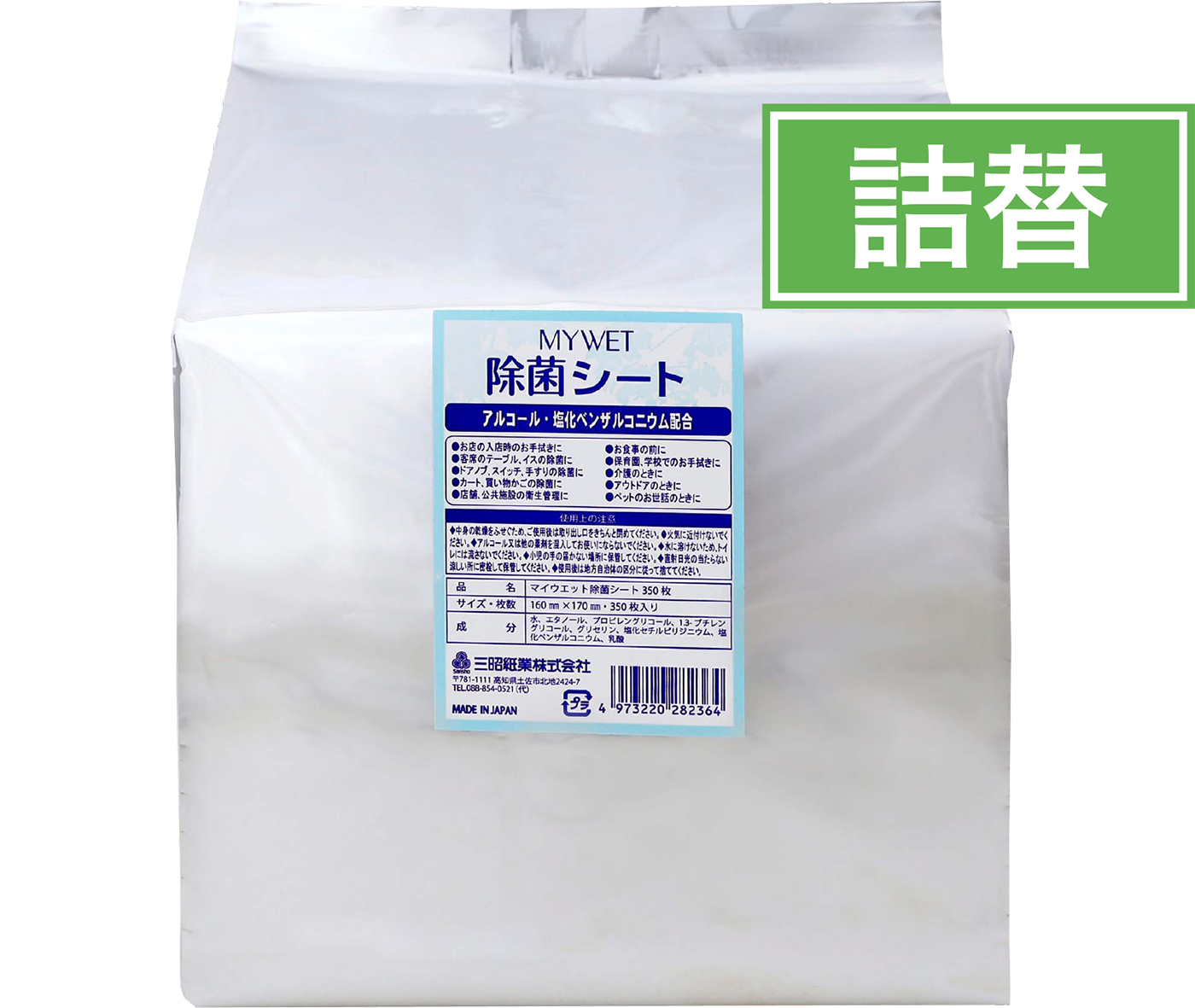 新発売された「MYWET除菌シート350枚」です。