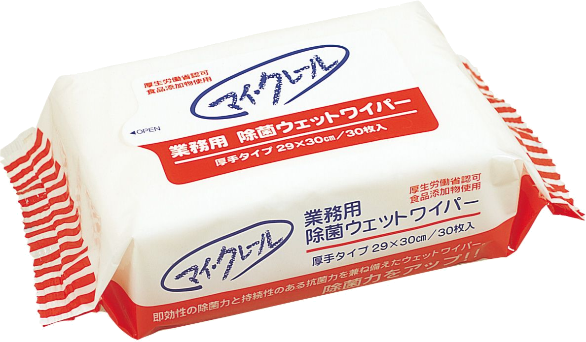 - 除菌効果の高いアルコールを主成分とし、含浸成分は厚生労働省認可の食品添加物を使用しています。